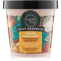 Ароматный крем надолго увлажняет и смягчает кожу тела. Зелёный кофе в составе придаёт упругость. Масла ши и кокоса делают кожу более гладкой и сияющей. Экстракты корицы и карамели стимулируют обновление клеток.