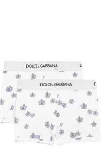 Боксеры с принтом в виде корон сшиты из мягкого, приятного на ощупь джерси. Материал на основе гигроскопичного хлопка хорошо пропускает воздух, поэтому в таком белье будет комфортно весь день. Эластичный пояс-лента украшен вышитыми именами Доменико Доль...