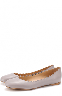 Серые кожаные балетки 'Lauren' от Chloé(Хлое). Миндалевидный носок, зазубренные детали, стелька с тиснением бренда, кожаная подошва без каблука.