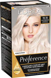 Краска для волос L`Oreal Paris Preferance 11.11 Ультраблонд пепельный 40 мл за 1 776 руб.