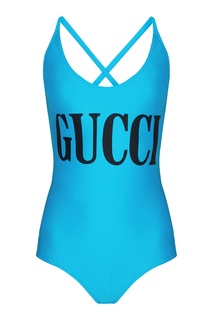 Крупный логотип Gucci, дизайн которого был вдохновлен винтажными принтами, украшает слитный купальник, выполненный из блестящей лайкры ярко-голубого цвета. Благодаря универсальной застежке лямки купальника можно носить как крест-накрест, так и в форме в...