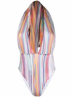 Разноцветный слитный купальник с открытой спиной от Missoni.Пожалуйста, меряйте купальные костюмы поверх собственного нижнего белья.
