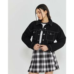 Denim jacket by New Look, Неэластичная джинсовая ткань, Эффект небольшой потертости, Декоративные нашивки, Классический остроконечный воротник, Планка на пуговицах, Вместительные карманы, Необработанный край, Укороченный фасон, Классический крой, точное...