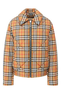 Стеганая куртка прямого кроя. Стежка выполнена в стиле охотничьих курток — ромбовидным узором. Черный контрастный отложной воротник, небольшие золотистые кнопки, а также подкладка с фирменным принтом делают вещь узнаваемой в ряду легендарных моделей Bur...