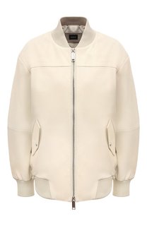 Бомбер насыщенного бежевого оттенка мастера марки, основанной Хуго Фердинандом Боссом, сшили из матовой кожи с легким блеском. Материал тщательно выделали, чтобы сделать его мягким и эластичным. Швы на рукавах реглан акцентировали серебристыми шипами. К...