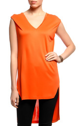 Артикул: 4Р55-12739 Цвет: оранжевый Состав: 93% вискоза, 7% эластан Особенности: изделие выполнено из тонкого трикотажа Параметры изделия: для размера 42/42: обхват груди 84 см, длина изделия по спинке 88 см Параметры модели: рост 178, 88х6...