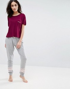 Пижама размера плюс ASOS CURVE Мягкий трикотаж Овальный вырез Сплошной принт Длинные штаны Эластичный пояс Машинная стирка 95% хлопок, 5% эластан