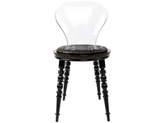 В обивке стула использована ткань, имитирующая крокодиловую кожу, черного цвета с матовым серым оттенком, выпуклыми наружу гранями и эффектом глянцевой патины.&nbsp;<div>Ножки и спинка изготовлены из поликарбоната, выносливого и до...