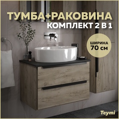 В комплект 2 в 1 входит:1. Тумба подвесная Teymi Helmi 70, 2 ящика с доводчиком, дуб крафт/графит матовый.2. Раковина Teymi Lori 50 накладная, белая. Характеристики раковины:-- Артикул производителя: T50502;-- Серия / коллекция: Lori;-- Модель: Lor...