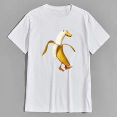 Белый Институтский Короткий рукав Хлопок Животный Фрукты и овощи Легкий Эластичный Лето Мужские футболки и майки, size features are:Bust: ,Length: Обычные ,Sleeve Length:Короткий рукав