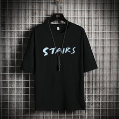 Чёрный Повседневный Половинный рукав Хлопок графический принт буква Легкий Эластичный Лето Мужские футболки и майки, size features are:Bust: ,Length: Обычные ,Sleeve Length:Половинный рукав