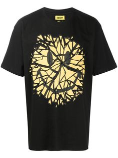 Графичный принт, круглый вырез и короткие рукава. Цвет: черный.