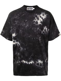 Принт тай-дай, круглый вырез, короткие рукава и прямой подол.