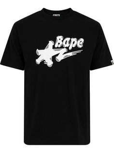 Принт с логотипом на груди, круглый вырез, короткие рукава и прямой подол. Цвет: черный.