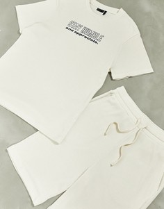 Одежда для дома ASOS DESIGN Из коллекции экологичной моды Комплект одежды для дома Футболка с круглым вырезом Логотип Dark Future Подходящие по стилю шорты Эластичный пояс Боковые карманы Футболка в стиле oversize Шорты классического кроя