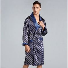 Классический стильный мужской халат из искусственного шёлка с поясом и жаккардовым подкладом - хороший домашний вариант на повседневную носку. Домашний халат удобен и максимально комфортен. Благодаря посадке, подойдет данный шелковый халат для мужчин лю...