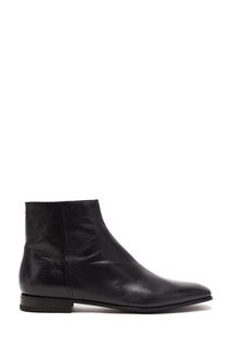Ботинки черного цвета выполнены из натуральной полированной кожи кенгуру. Модель лаконичного дизайна с мысом квадратной формы и застежкой-молнией сбоку. Подошва и небольшой блочный каблук в тон изделия. Состав: верх: