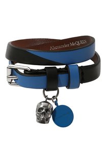 Браслет в два оборота с подвеской Skull в виде черепа от Alexander McQueen (Александр Маккуин). Регулируемый размер, серебристая пряжка, фирменная подвеска-череп, подвеска с логотипом и принт с логотипом. Цвет: синий. Состав: Кожа