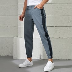 Пыльно-синий Повседневный Хлопок Контрастный цвет Конические/Морковь Легкий Эластичный Весна/Лето/Осень Мужские брюки, size features are:Bust: ,Length: Обрезанные ,Sleeve Length: