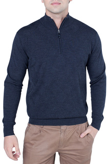 Темно-синий шерстяной джемпер с горловиной на молнии от Roberto Collina.