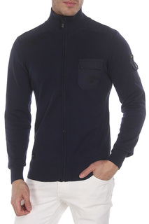 Вышитый логотип на рукаве, контрастная строчка, вставки, круглый вырез, два нагрудных кармана на молнии, длинные рукава, манжеты в рубчик и подол в рубчик. Цвет: черный.