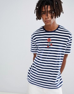 "Футболка ASOS DESIGN, Узор в виде полосок, Классическая модель, Круглый вырез, Вышивка "розы", Свободный крой, Свободный крой, но не oversize. Добавляя к самым трендовым дизайнам свои фирменные отделки, ASOS DESIGN выпускает вещи, способные подчеркнуть...