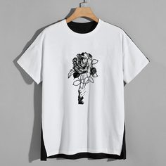 Черный и белый Улица Короткий рукав Хлопок Со цветочками Хэллоуин Легкий Эластичный Лето Мужские футболки и майки, size features are:Bust: ,Length: Обычные ,Sleeve Length:Короткий рукав