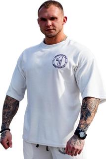 Мужская футболка оверсайз-силуэта. Выполнена из материала, в составе которого 92% хлопка и 8% эластана, за счет чего футболка лучше держит форму. Спущенная линия плеча делает крой футболки более молодежным. На груди расположена стильная вышивка-логотип....