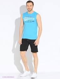 Мужская футболка без рукавов выполнена из чистого хлопка. Спереди контрастный принт с надписями. Круглый вырез и проймы обрамлены кантом в тонкий рубчик. Прямой полуприлегающий силуэт не сковывает движения. Хорошо сочетается с шортами. На модели предста...