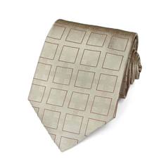 Широкий светло-серый галстук сшили из плотного шелкового жаккарда. Переплетение волокон разных оттенков формирует клетчатый мотив, которому придает визуальный объем характерный деликатный блеск материала. Чтобы аксессуар не перекручивался, задний шов вы...