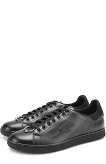 Черные кожаные кеды с нашивкой молнии от Neil Barrett. Закругленный носок, шнуровка спереди, стелька с тиснением бренда.