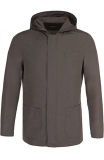 Куртка с капюшоном и тремя карманами сшита из прочного нейлона с добавлением волокон шелка. Этот водоотталкивающий материал, сотканный на собственной мануфактуре марки в Бьелле, обеспечивает высокую защиту от ветра и влаги. Модель цвета хаки застегивает...