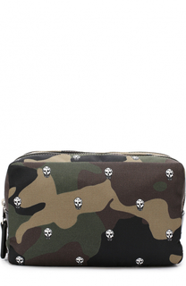 Александр Маккуин впервые использовал изображение черепа для декора изделий в 2003 году. Такой мелкий паттерн украшает черный несессер из осенне-зимней коллекции 2017 года. Аксессуар из прочного, устойчивого к загрязнениям нейлона застегивается на молни...