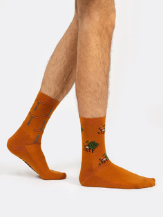 Носки мужские классические высокие с теплой махровой стопой. На носках есть забавный рисунок и слова "накормить" и "обогреть". Длинные мужские носки с принтом изготовлены из гребенного хлопка - пряжи высочайшего качества, мягкой, тон...