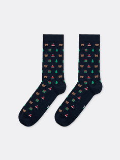 Носки мужские классические высокие с тонким бортом и мелким рисунком - отличная возможность внести разнообразие и поднять настроение в праздники. Длинные мужские носки с принтом изготовлены из гребенного хлопка - пряжи высочайшего качества, мягкой, тонк...