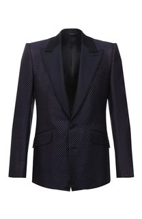 Темно-синий пиджак из осенне-зимней коллекции создан для торжественных приемов. Наши стилисты предлагают оттенить модель белой сорочкой, черными брюками и бабочкой. Лаконичные вещи помогут сконцентрироваться на сложной фактуре плотного шелкового жаккард...