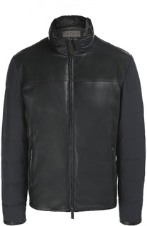 Пуховик со вставками от Canali (Канали). Обитая внутренняя сторона, воротник с высокой стойкой, застежка на пуговицах спереди, нагрудный карман, длинные рукава, карманы с клапанами, прямой подол и короткая длина.