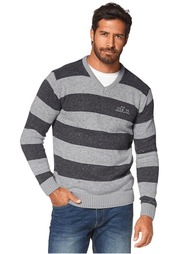 Классика моды: трикотажный пуловер с окантованным V-образным вырезом. Нижний край модели и длинные рукава по низу также отделаны эластичной резинкой в рубчик. Стандартный крой и вязка с высоким содержанием хлопка гарантируют комфорт. Отлично сочетать с ...