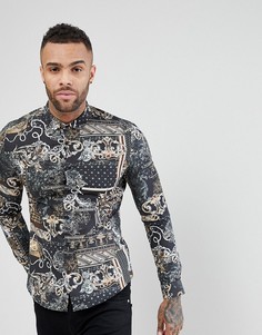 Рубашка River Island Всегда пригодится Цветочный рисунок Заостренный воротник Планка на пуговицах Узкий крой Узкий крой с плотной посадкой по фигуре