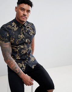 Рубашка River Island, Заостренный воротник, Планка на пуговицах, Рукава узкого кроя, Облегающий крой, Выгодно подчеркивает достоинства. Популярный бренд River Island знаменит своей любовью к уникальным отделкам, которые он добавляет к самым разным мужск...