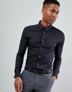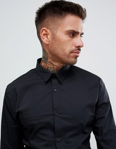 Рубашка River Island, Из обогащенного хлопком тканого материала, Заостренный воротник, Планка на пуговицах, Закругленный край, Узкий крой, максимально облегающий тело, Машинная стирка, 60% хлопок, 40% полиэстер, Размер на модели: M, рост модели: 185,5 с...