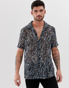 Рубашка River Island Категория: с принтом Широкий воротник Застежка на пуговицы Короткие рукава Обтягивающий крой