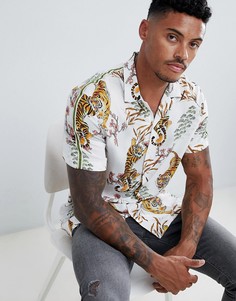 Рубашка River Island, Добавьте серьезности дневному образу, Отложной воротник, Планка на пуговицах, Изображения головы тигра, Эффектный дизайн, Узкий крой, максимально облегающий тело. Популярный бренд River Island знаменит своей любовью к уникальным от...
