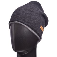 Трикотажный материал, вязаные края в рубчик, нашивка с логотипом сбоку и подвернутые поля.