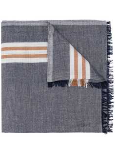 Шарф с контрастной полоской от Brunello Cucinelli (Брунелло Кучинелли). Легкая конструкция, прямоугольная форма и оторочка с бахромой.