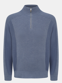 Джемпер из шерсти и хлопка с добавлением искусственных волокон от Armani Exchange. Модель с воротом-стойкой на молнии и длинными рукавами.