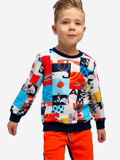Детский легкий свитшот для мальчиков от белорусского бренда Mark Formelle. Стильная кофта свободного кроя без подчеса, с округлой горловиной и принтом. Свитшот - универсальная вещь для ребенка на повседневную носку, на учебу, в школу, в детский сад, на ...