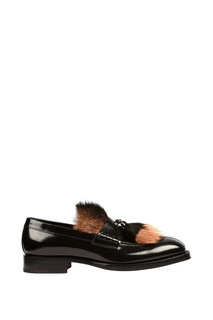 Кожаные туфли черного цвета с удлиненным мысом украшены фигурной вставкой и отстрочкой в шерсть рядов. Модель с открытой шнуровкой украшена тиснением в виде логотипа. Толстая подошва с небольшим подъемом и рельефным рантом. Состав: верх: 100%КОЖА ТЕЛЕНКА