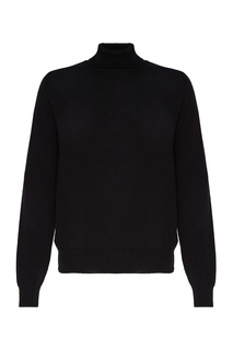Черная водолазка, выполненная из смеси шерсти и кашемира. Модель с посадкой по фигуре и высоким воротником с отворотом. Низ и манжеты изделия — в резинку. Состав: 90% шерсть 10% кашемир