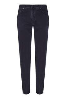 Укороченные мужские джинсы итальянского бренда Kiton. Зауженная модель чернильного синего оттенка выполнена из фактурного эластичного хлопка. Ширинка на молнии, застежка с декоративной пуговицей, серебристые заклепки на швах сверху. Немного заниженная п...